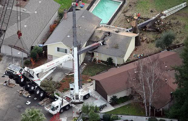 Michelle and Kevin McCarthy returned to their home in Santa Rosa, California to find it destroyed when a 90ft, 50-ton, crane toppled over crashing into their house and cutting it virtually in half.