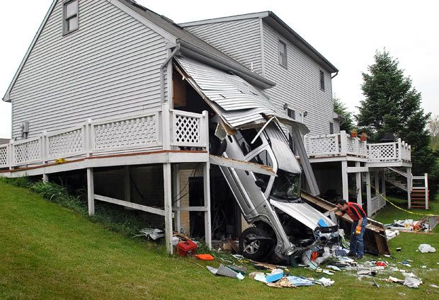 The driver said that as he was returning home, the vehicle's accelerator stuck and he couldn't stop before hitting the house. The driver was not hurt.