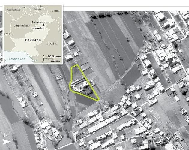 Aerial view of Osama bin Laden's compound in the pakistani city of Abbottabad made by the CIA.