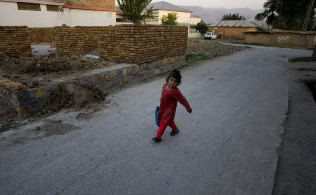 A Pakistani girl carries plastic water container as she heads back to home after getting drinking water from nearby point at neighborhood of al-Qaida leader Osama bin Laden in Abbottabad, Pakistan on Wednesday, May 11, 2011.
